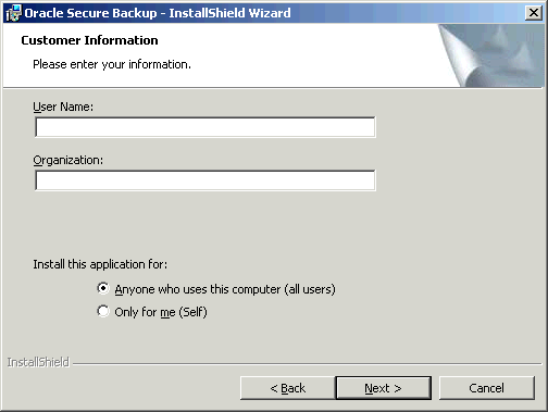 The Oracle Secure Backup Setup dialog box appears. (See Figure 2-3.)
