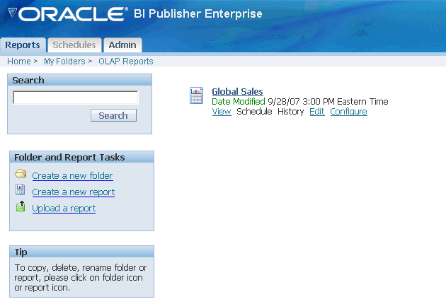 A report consists of a report entry, which you create in BI Publisher, and a layout template, which you create using an application such as Microsoft Word or Adobe Acrobat. You can organize your reports in folders.
