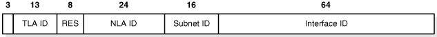 Thus, the first 3 bits in the address are 001. The TLA ID portion of the address is 0000000000001.