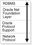 Oracle protocol support maps Oracle Net foundation layer functionality to industry-standard protocols used in client/server connections.